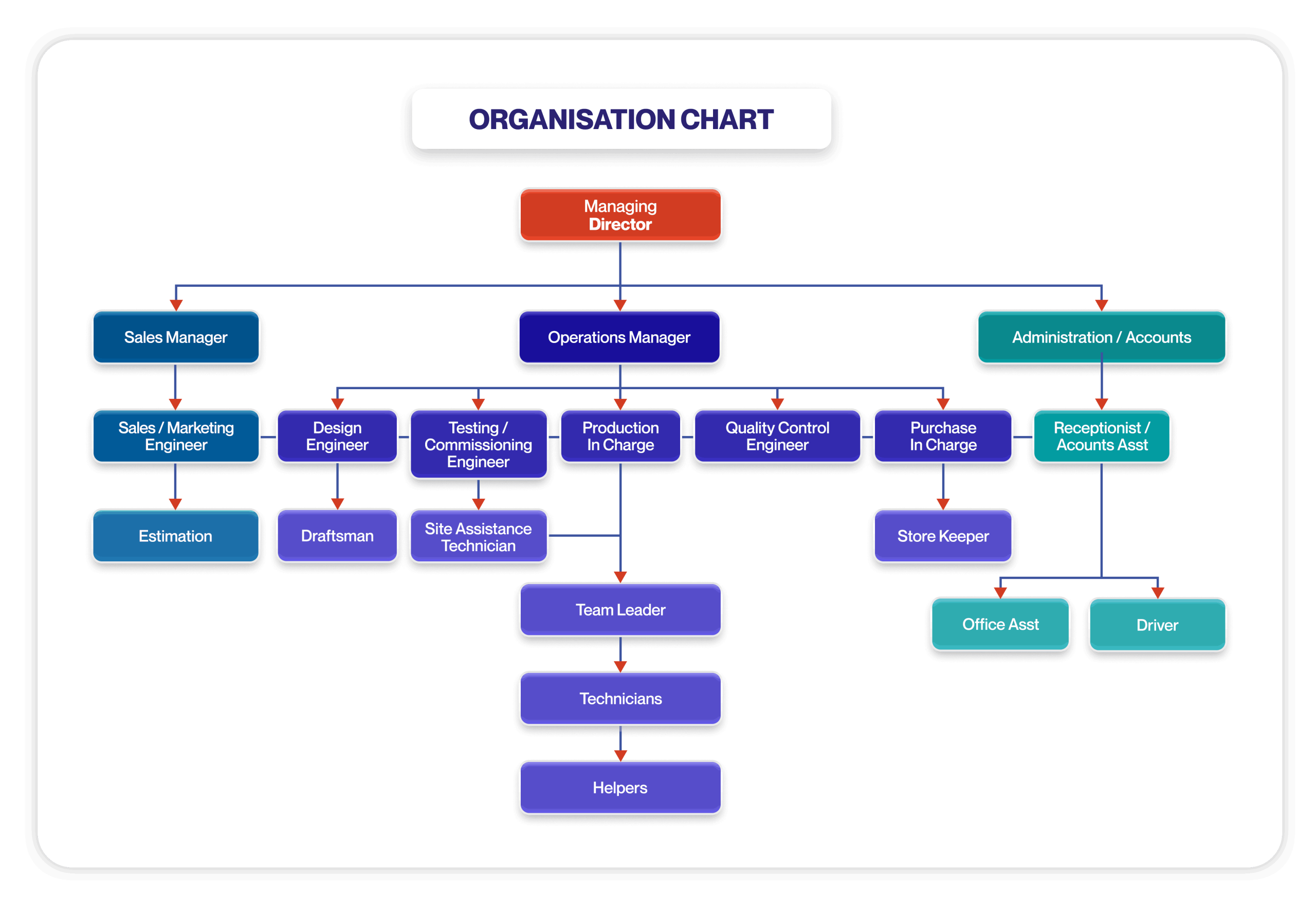 Sales, Design, Production, Engineering Dept